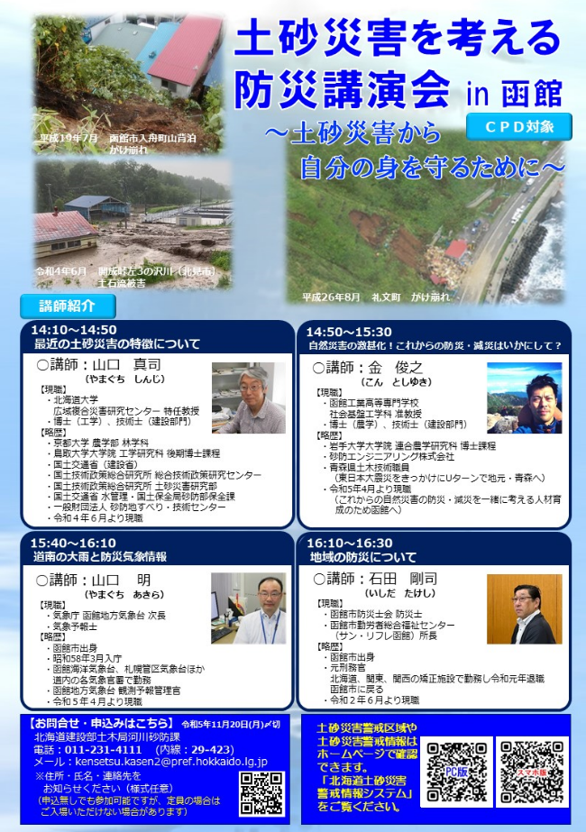 ■ 11月28日(火)に「土砂災害を考える防災講演会in函館」~土砂災害から自分の身を守るために~が開催されます!