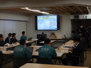 10月31日(火)、道では、大雪時の関係機関の連携や対応手順を確認することを目的として、「北海道雪害対策連絡部連携確認訓練」を北海道庁本庁舎危機管理センターで実施しました。